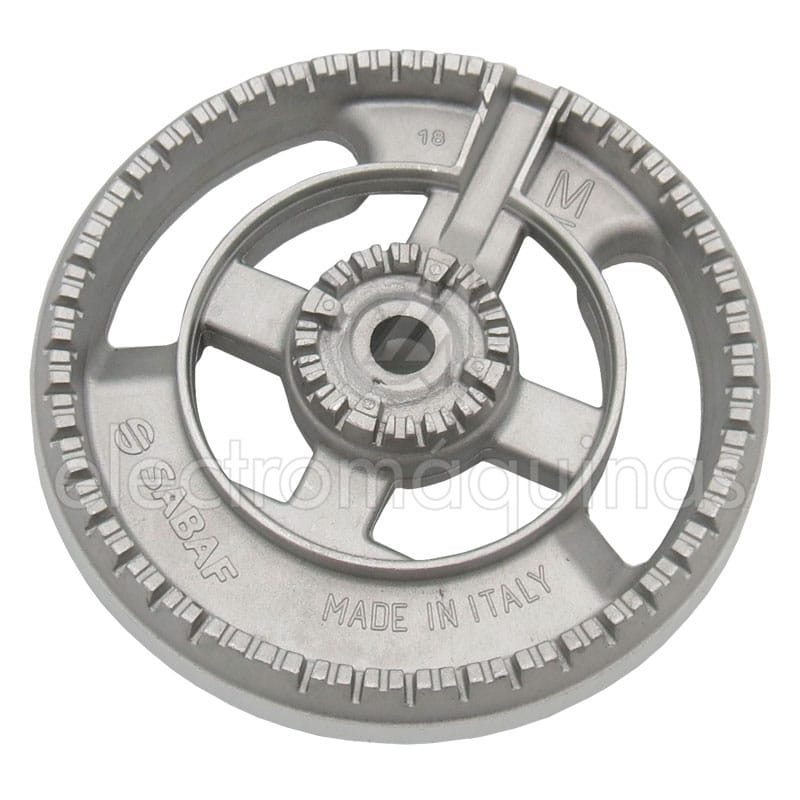 Base para placa Meireles. O desgaste desta peça pode fazer com que o gás queime incorretamente na placa. É notório quando a cor da chama muda ou quando os fundos das suas panelas escurecem excessivamente. Substitua a sua base da placa para que volte a funcionar normalmente.