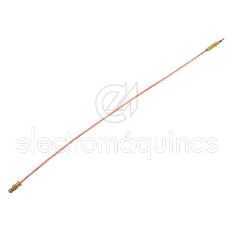 Termopar de ponta M8 e com 100 centímetros de comprimento. O Termopar é um meio de segurança, que deteta a descida de temperatura da placa ou fogão e faz o corte do gás através do fecho da válvula.