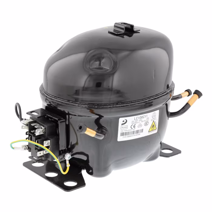 Compressor para frigorifico combinado AEG 4055479838. O compressor do frigorífico ou congelador é a peça que faz circular o refrigerante no sistema de refrigeração. Se o compressor avariar, todo o sistema de refrigeração do seu equipamento deixará de funcionar.