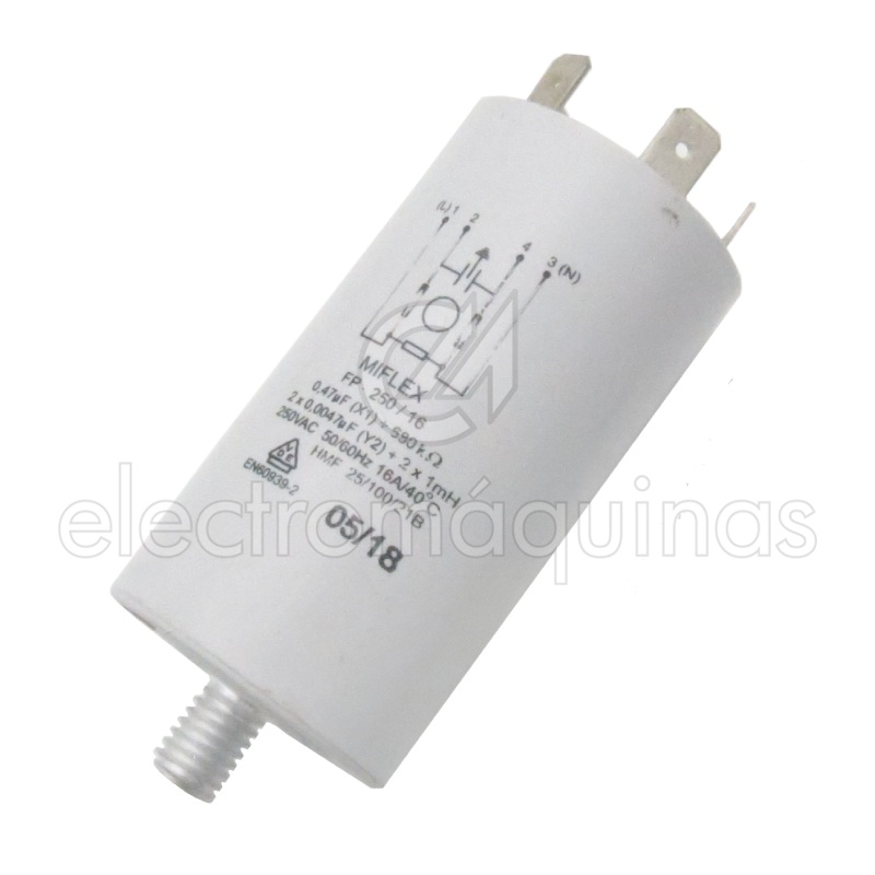 Condensador de 5 terminais para frigorifico 0,47X2MF. O condensador funciona em conjunto com o motor do aparelho. Se o condensador estiver avariado, pode resultar em desperdício de energia e ruídos indesejáveis.