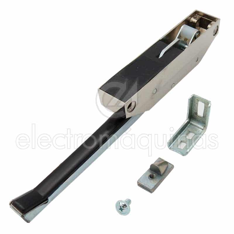 Fecho de balcão vertical, pega poliamida e inox, batente aço zincado.