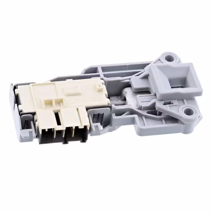 Bloca porta para máquina de lavar roupa AEG, Zanussi e Electrolux. O bloca portas é a peça que evita que a sua máquina inicie o ciclo de secagem com a porta aberta. Se a sua secadora não inicia o ciclo ou a porta permanece bloqueada após o fim do ciclo, é possível que o bloca portas esteja avariado.