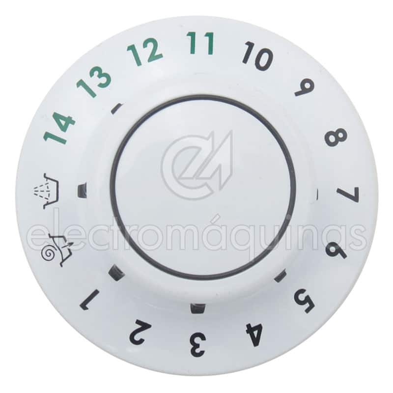 Botão de controlo de programas para máquina de lavar roupa. Se algum botão da sua máquina de lavar roupa estiver danificado, faça uma substituição fácil e rápida com esta peça e recupere o aspeto de novo do painel de comandos.