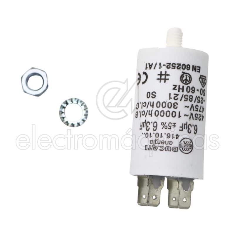 Condensador para máquina de lavar loiça 18MF 425V Ducati. O condensador funciona em conjunto com o motor, por isso se o condensador estiver defeituoso, pode fazer com que o motor da sua máquina não arranque ou se torne ruidoso e desperdice energia.