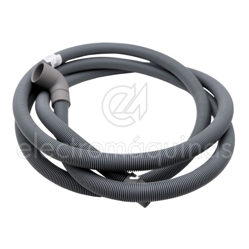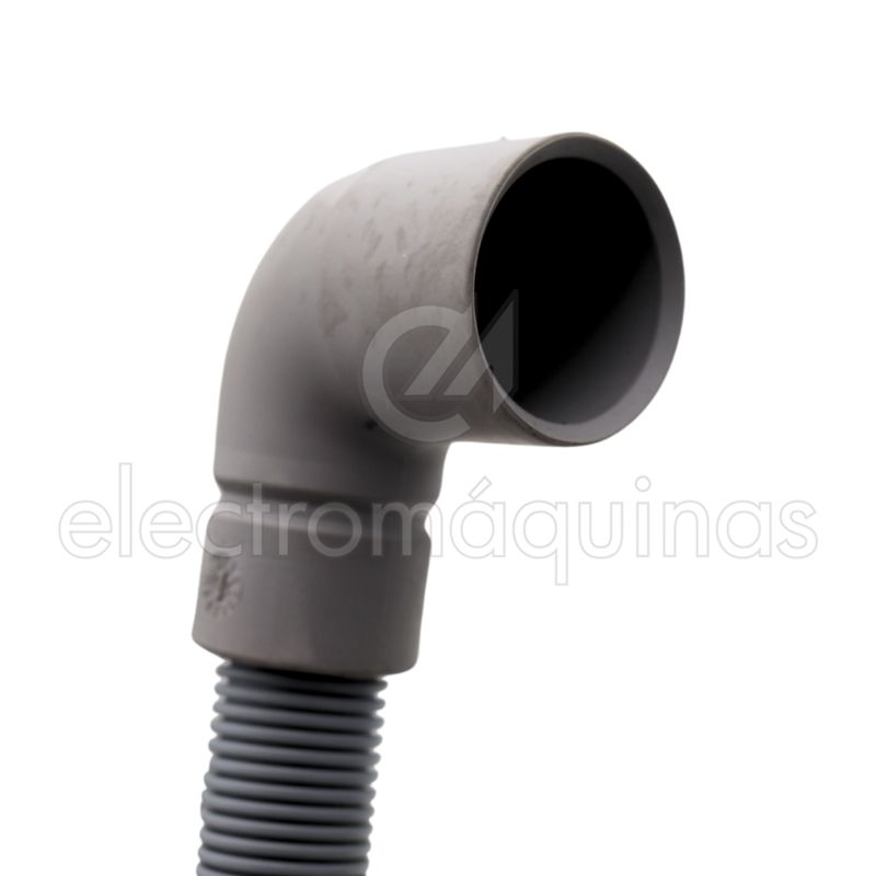 Mangueira de esgoto com furo largo e curva. A água suja é expulsa da máquina através da mangueira de esgoto. Se o tubo, ou mangueira, tiver algum dano, é provável que haja uma fuga de água que poderá causar estragos no seu chão. Faça a substituição com esta peça para evitar danos futuros.