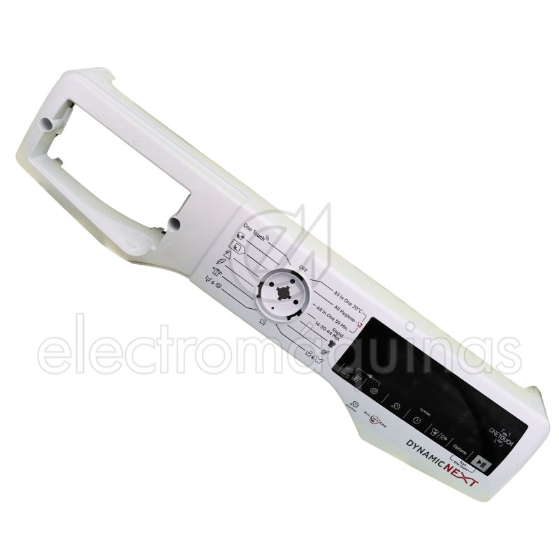 Face de comandos para máquina de lavar roupa Candy. Os painéis fazem parte da estrutura externa da máquina, protegendo os componentes internos e oferecendo suporte aos comandos e indicadores. Contribuem para a estabilidade, segurança e estética do equipamento.