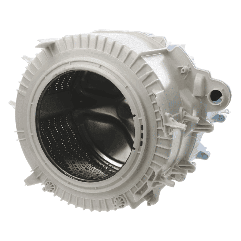 Tambor para máquinas de lavar roupa das marcas Siemens e Bosch. Os tambores ou cestos suportam e movimentam a roupa durante os ciclos de lavagem e secagem, garantindo uma limpeza uniforme e eficaz. A sua estrutura com furos permite a entrada e saída de água e ar, facilitando a rotação e o desempenho da máquina.