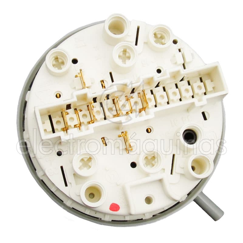 Pressostato para máquina de lavar loiça Ariston 2N. O pressostato da máquina de lavar loiça controla os litros de água que a máquina utiliza. Quando a loiça continua suja no fim do ciclo de lavagem, é possível que o interruptor de pressão esteja avariado.