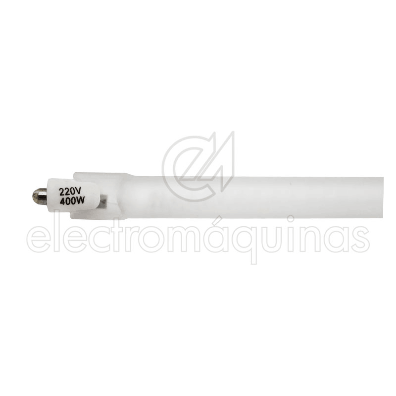 Lâmpada de halogéneo universal para aquecedor. Esta lâmpada de substituição para aquecedores é de 400W e tem 27 centímetros de comprimento.