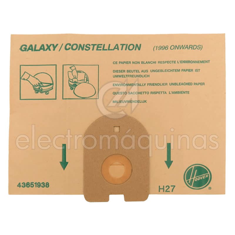 Sacos de aspirador Hoover Galaxy H27. Esta referência é vendida à unidade.