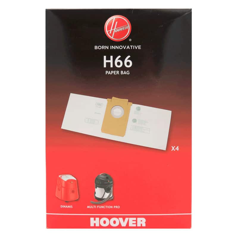 Sacos de aspirador Hoover H66 Originais. Cada embalagem contém 4 sacos (sistema duplo de filtragem) c/fecho.