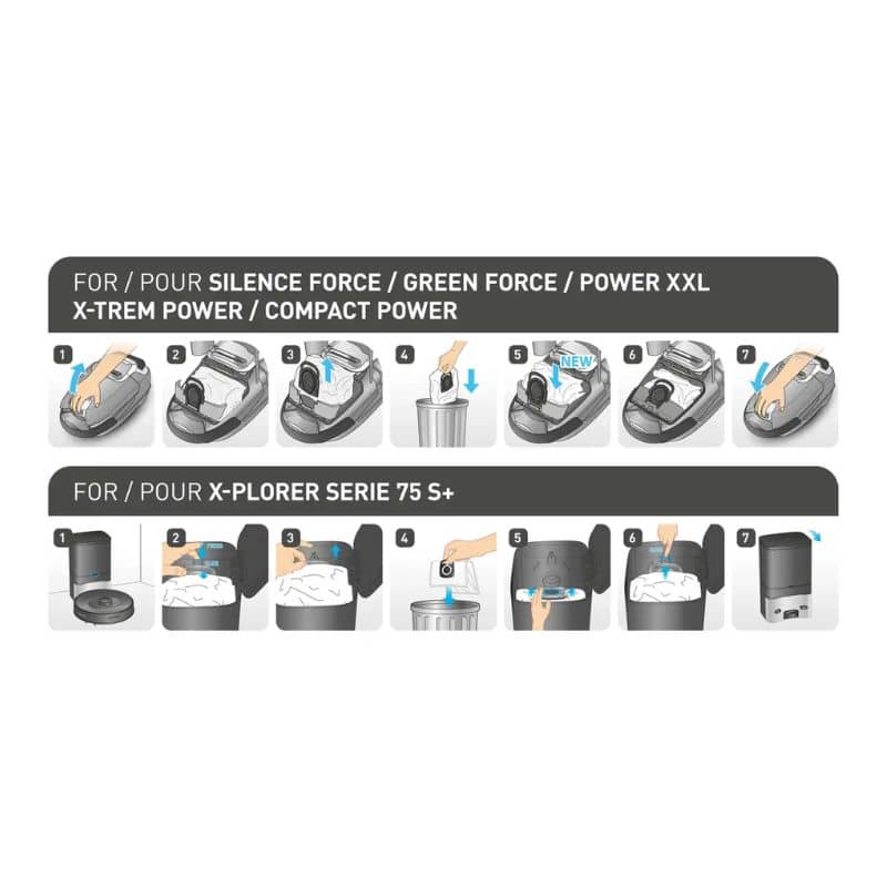 Inclui sistema de fecho automático, que se ativa ao abrir a tampa do aspirador, evitando qualquer contacto com o pó. Cada embalagem contém 4 unidades, permitindo uma substituição prática e prolongada ao longo do tempo.