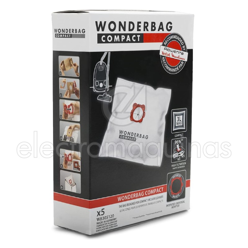 Sacos de aspirador Wonderbag Compact WB305120. Graças ao seu adaptador UNIVERSAL patenteado, o saco WONDERBAG pode ser instalado na maioria dos aspiradores com uma capacidade máxima de 3 litros.
