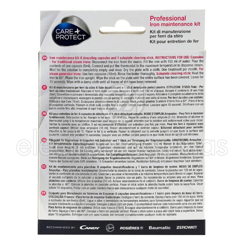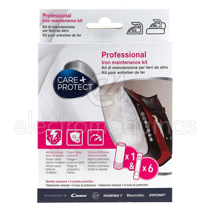 Kit Manutenção de Ferro de Engomar Care+Protect, com 1 batom e 6 ampolas.
