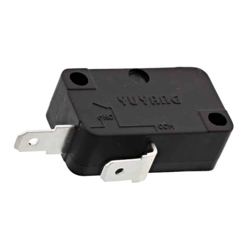 Microinterruptor de reposição para micro-ondas AEG. O microinterruptor para micro-ondas, também conhecido como micro switch, é o componente responsável por detectar o fechamento correto da porta, garantindo que o aparelho só funcione quando a porta estiver bem travada. Ele é fundamental para a segurança durante o uso.